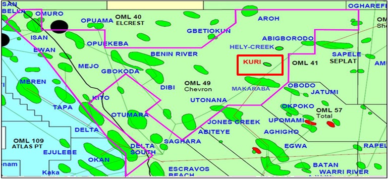 NUPRC delineated the Kuri field (PPL 222) concession as part of the 2020 Marginal Field Bid Round (MFBR 2020). The field is situated on the eastern boundary of OML 49 within the swamp terrain of the Niger Delta Basin, with CHEVRON acting as the farmor.